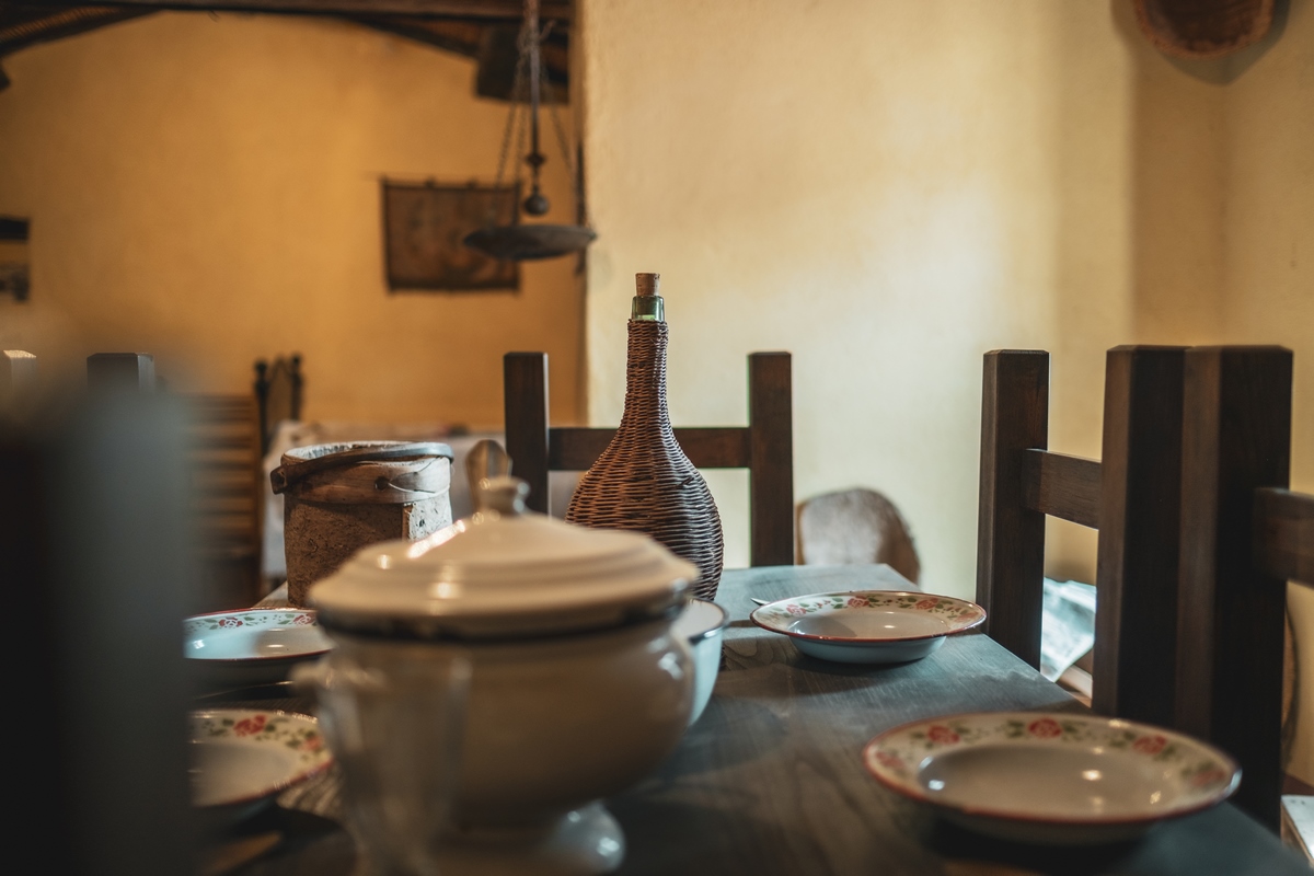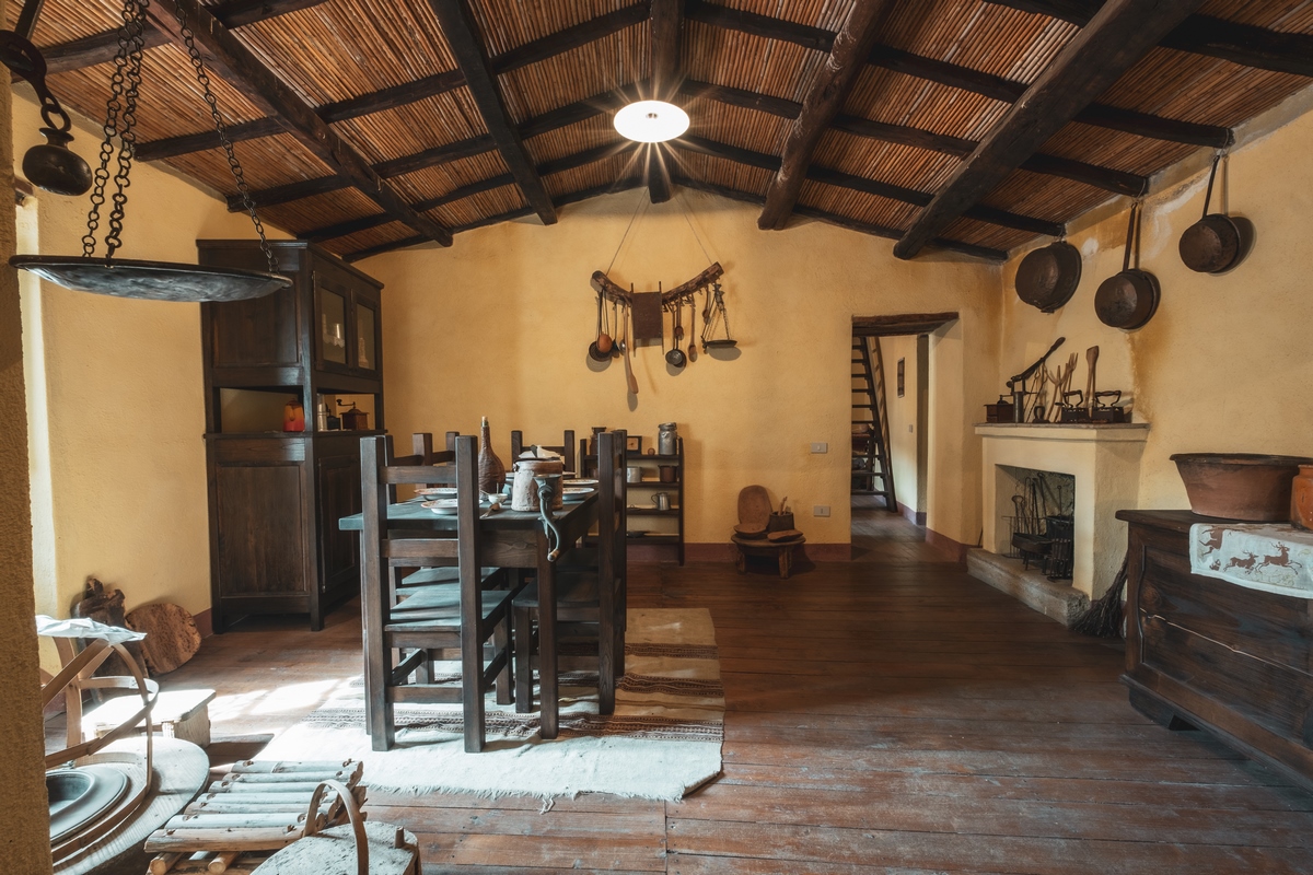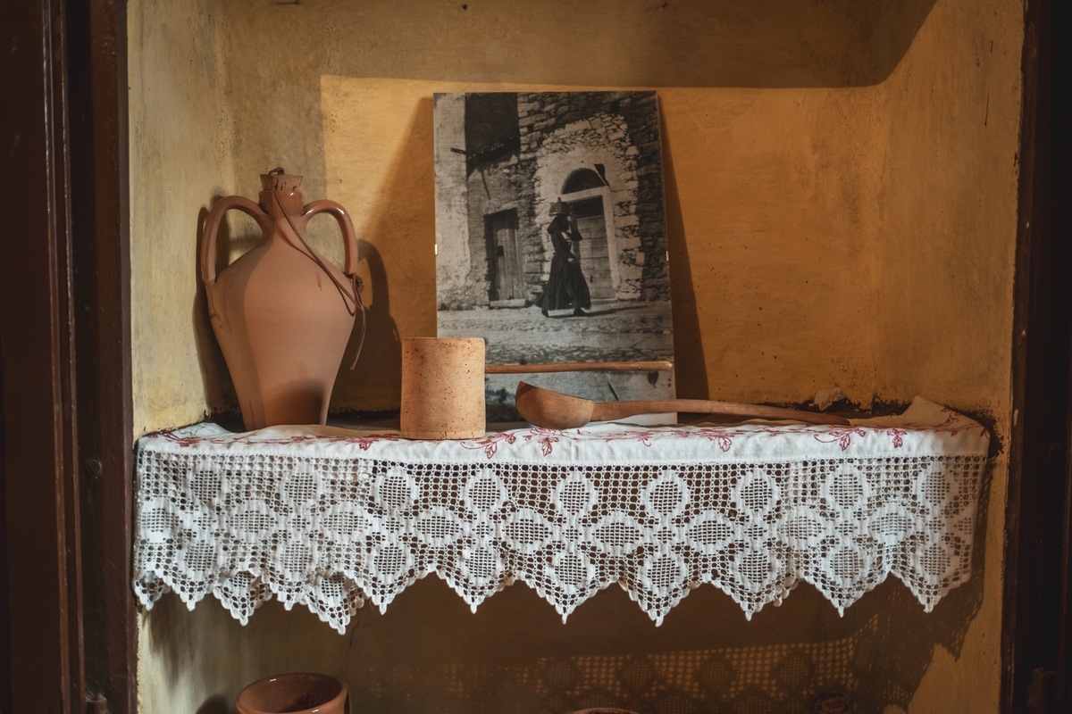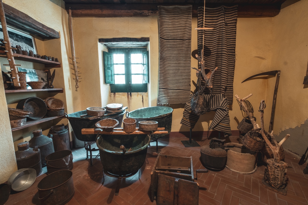 Outils, bibelots, objets d’usage quotidien et instruments de travail sont disposés selon un parcours thématique qui s’articule à travers les espaces de cette maison-musée ; tous ont pour fonction de représenter et de communiquer des activités ou moments spécifiques de la vie quotidienne.