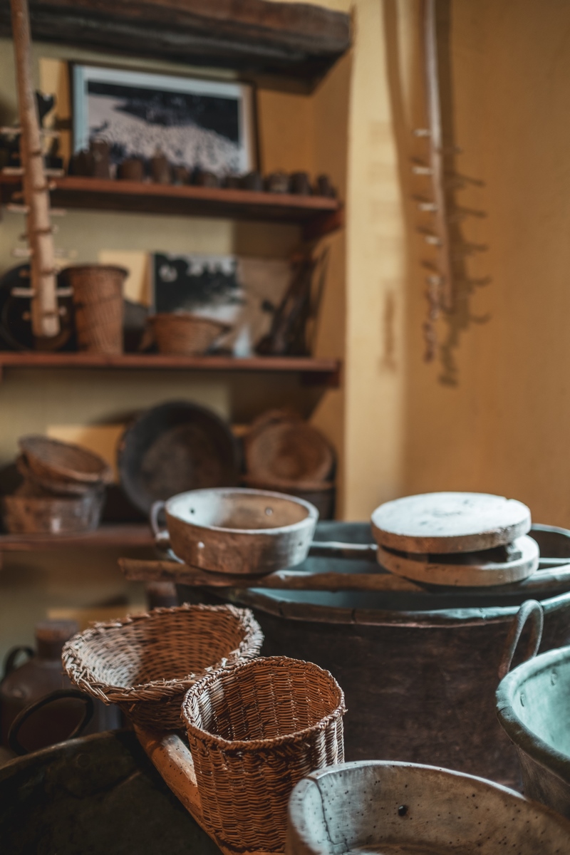 Le musée présente de nombreux objets originaux souvent usés par le travail et le temps, prêtés ou offerts par les familles locales.