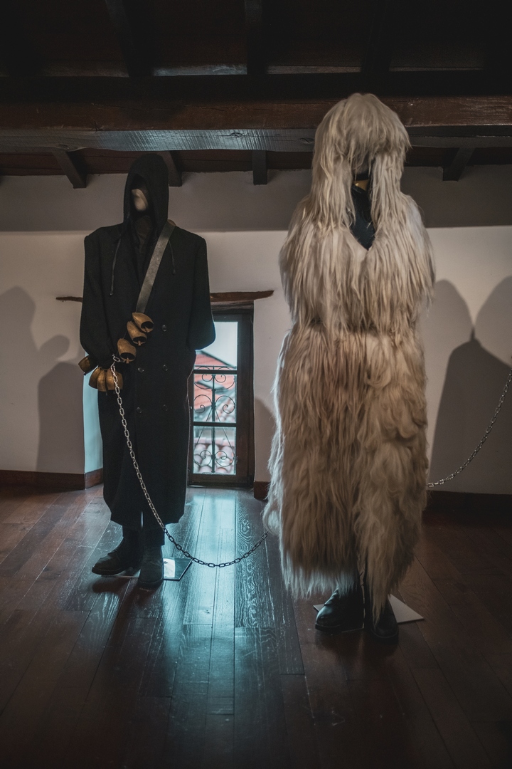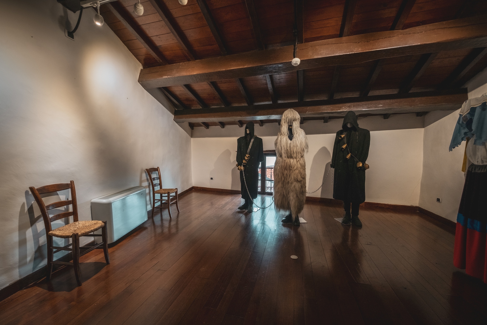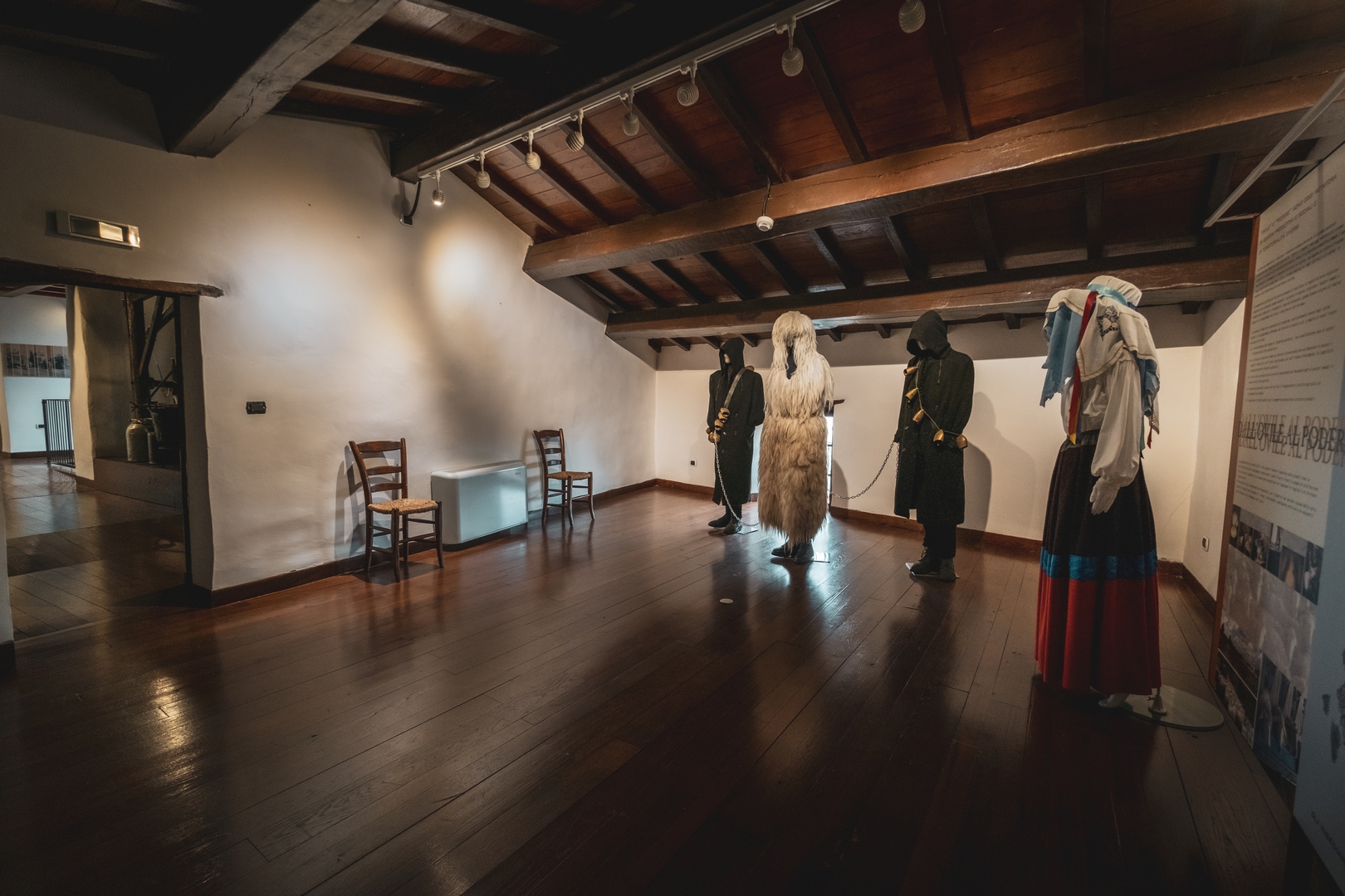 Une seconde section est consacrée aux fêtes et présente les masques traditionnels du carnaval de Fonni: S’Urthu, Sos Buttudos et Sas Mascheras Limpias. S’Urthu (vêtu de peaux, de couloir blanche ou noire, le visage noirci et une cloche au cou) et Sos Buttudos (qui porte un manteau de laine « orbace » sur des vêtements de velours, des chaussures aux pieds et des cloches sur les épaules) sont deux allégories qui illustrent la lutte quotidienne de l’homme contre les éléments de la nature. S’Urhtu agresse ceux qu’il rencontre sur son chemin et lutte pour se dégager de ses chaînes, tandis que sos Buttudos essaie de le dominer. «Sas Mascheras Limpias» représentent en revanche le bien et l’élégance, le désir de s’évader de la vie quotidienne. Dansant dans les rues du village, ils peuvent être représentés par des hommes ou des femmes ; ils portent des éléments du costume traditionnel féminin et une chapeau couvert de nappes brodées et ornées de rubans aux couleurs vives.